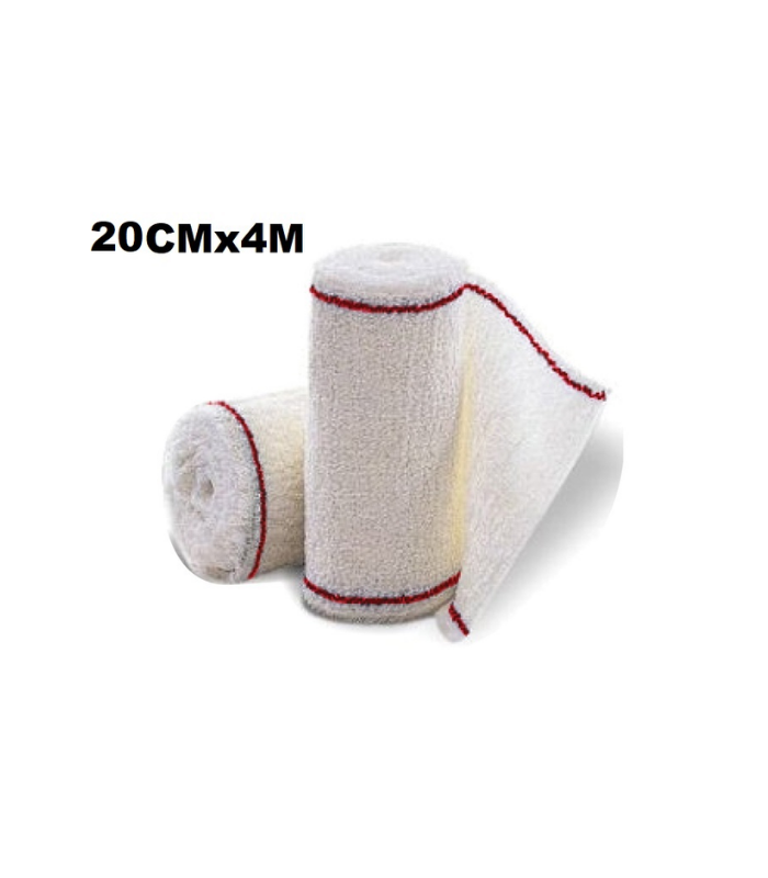 La bande de crêpe Velpeau 20 cm x 4 m est une bande de contention souple et respirante utilisée pour le maintien, le soutien articulaire ou le pansement compressif.